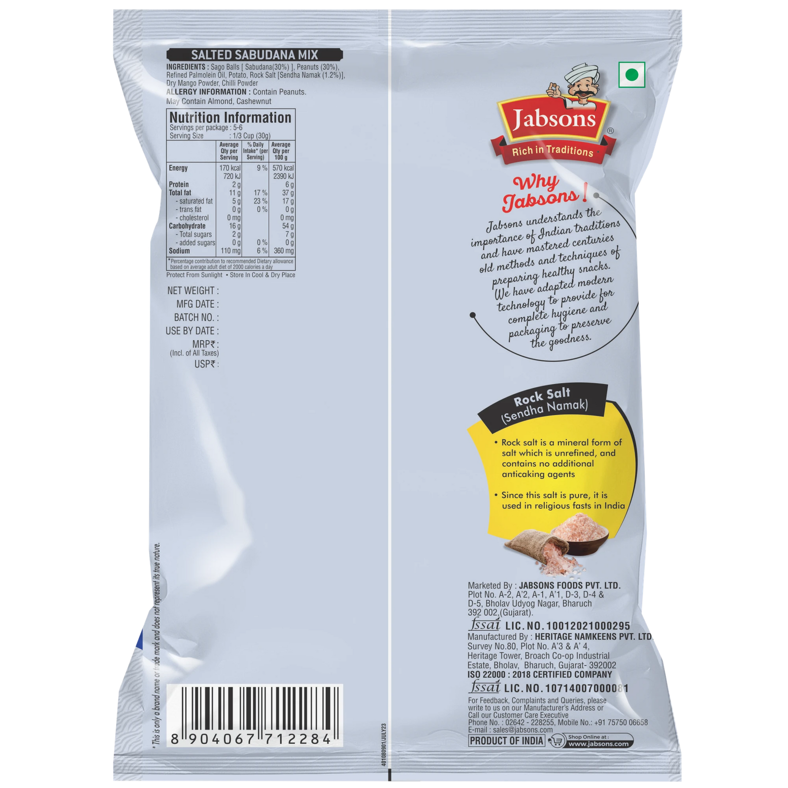 Jabsons Salted Sabudana is a light and airy snack. These small, crispy droplets are lightly salted, allowing their natural flavor to shine through.