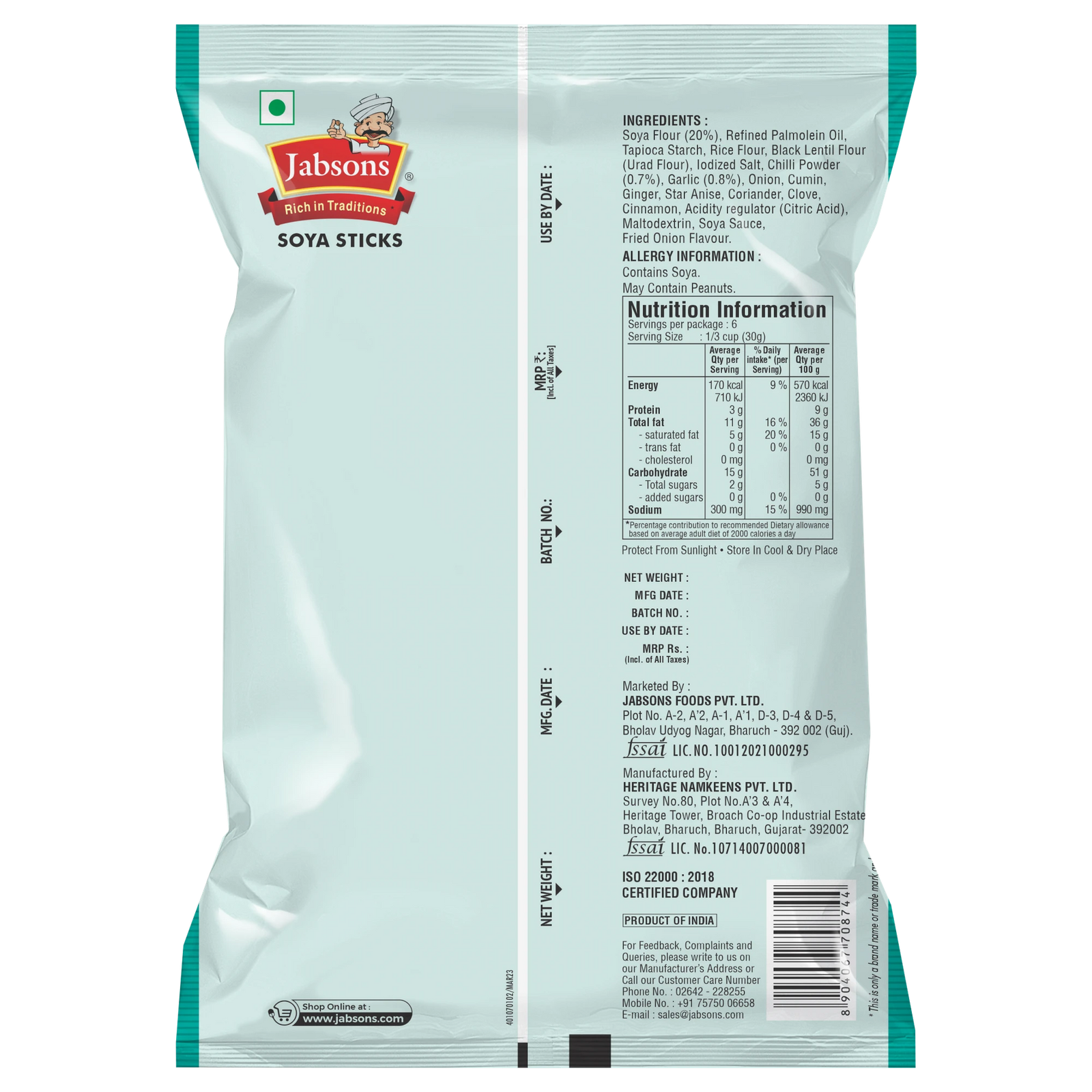 Jabsons Soya Stick Chinese Chatka is a unique and flavorful snack. These crunchy soya sticks are seasoned with a tangy and spicy blend of Chinese chatka flavors, creating a snack that’s both fun and delicious.